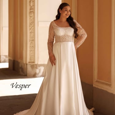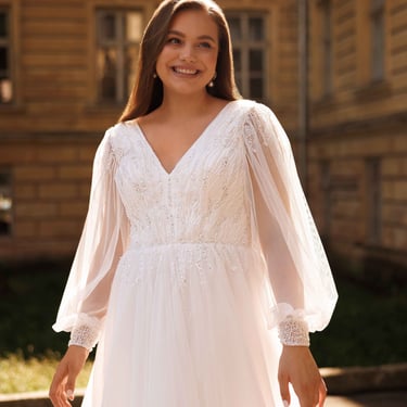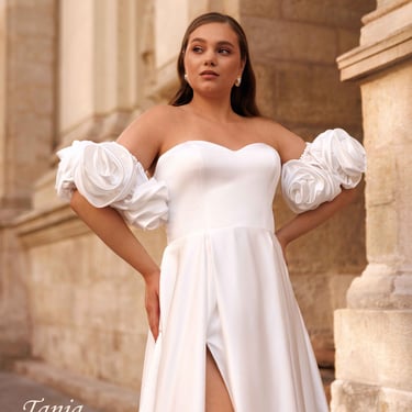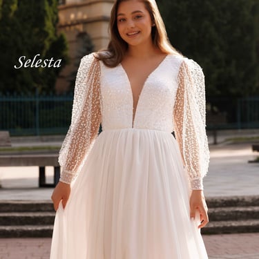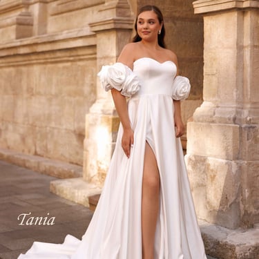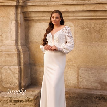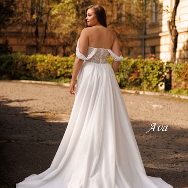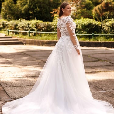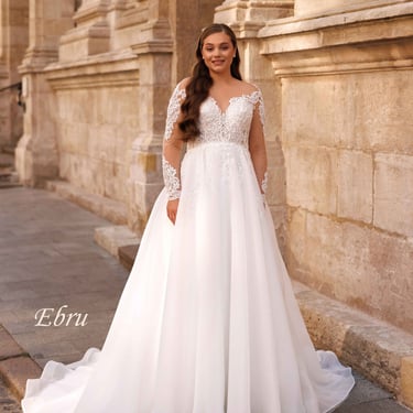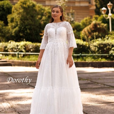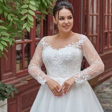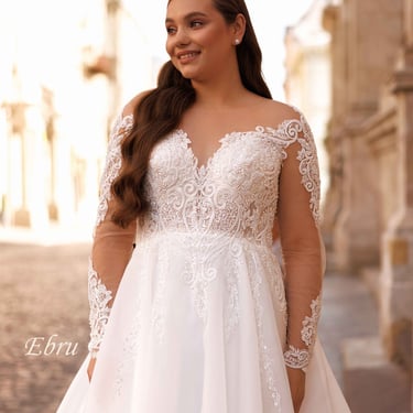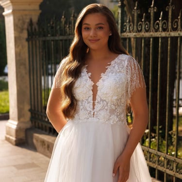 Embrace your perfect fit on your special day with our stunning collection of plus-size bridal gowns, designed to celebrate every curve with elegance and style.